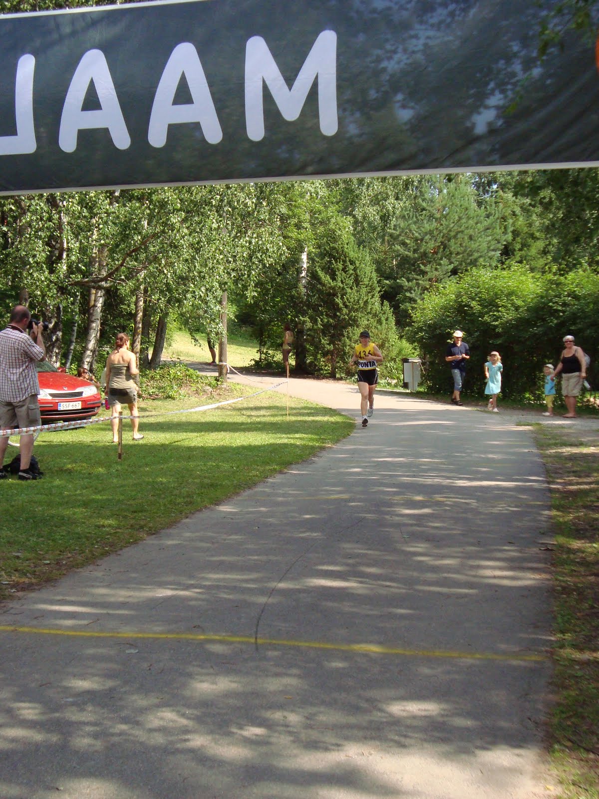 Juoksussa jalat olivat tönköt ensimmäiselle kääntöpaikalle eli 2,5 km. Tein kuitenkin päätöksen, että kävelemään en lähde ja se pitikin loppuun asti. Pystyin ehkä hieman rennommin juoksemaan puolimatkaan ja siitä sitten sisulla loppuun. Pidin itseäni ihan kohtuullisena juoksijana, mutta suhteessa muihin taisin kuitenkin yllätyksekseni olla huonompi juoksussa kuin pyöräilyssä.